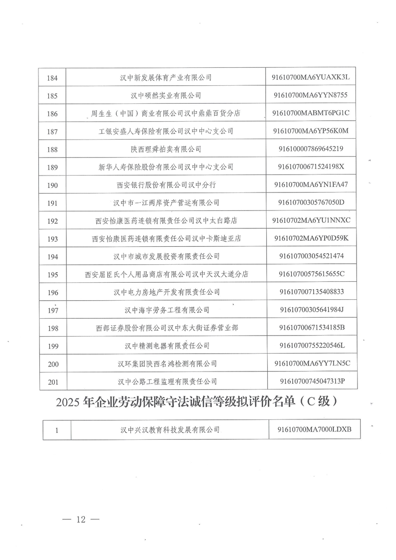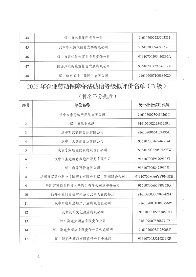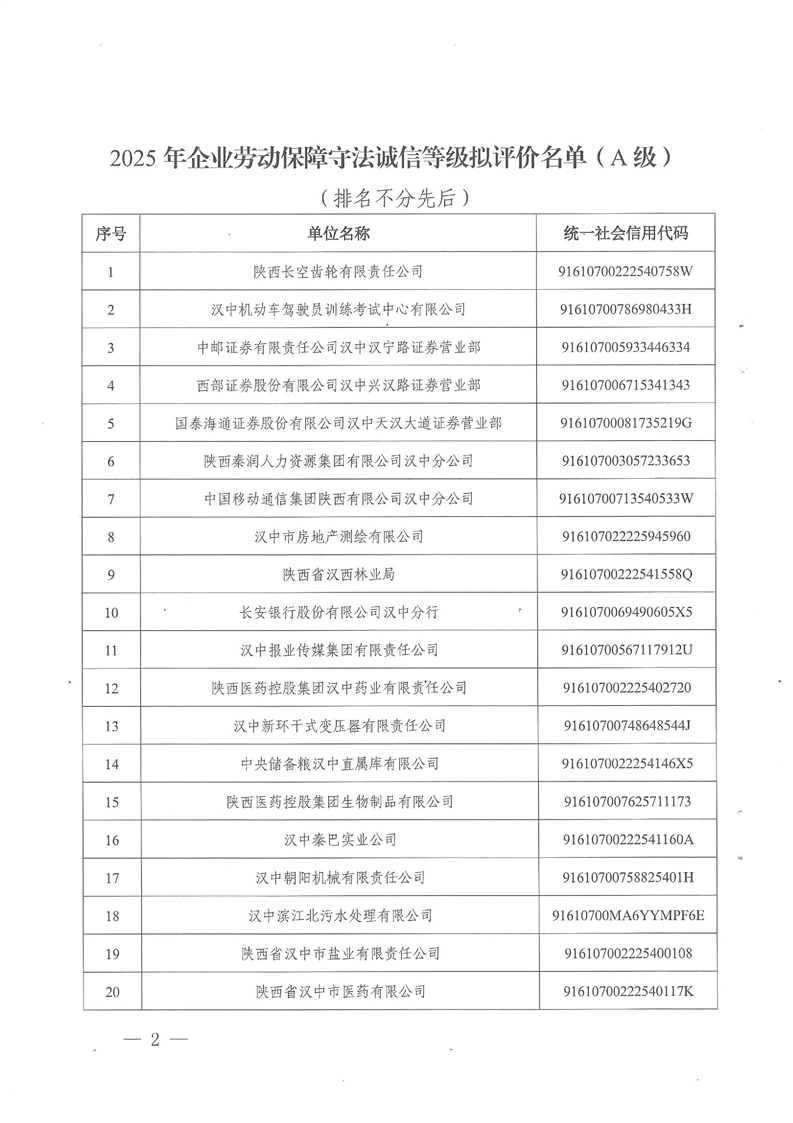 | 内容概述: | 汉中市人力资源和社会保障局关于反馈2025年市本级企业劳动保障守法诚信等级评价结果的通知 | ||