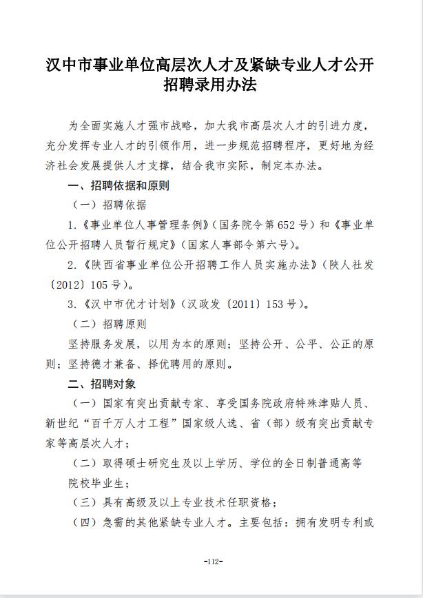 汉中市事业单位高层次人才及紧缺专业人才公开招聘录用办法(汉政发〔2014〕28 号)
