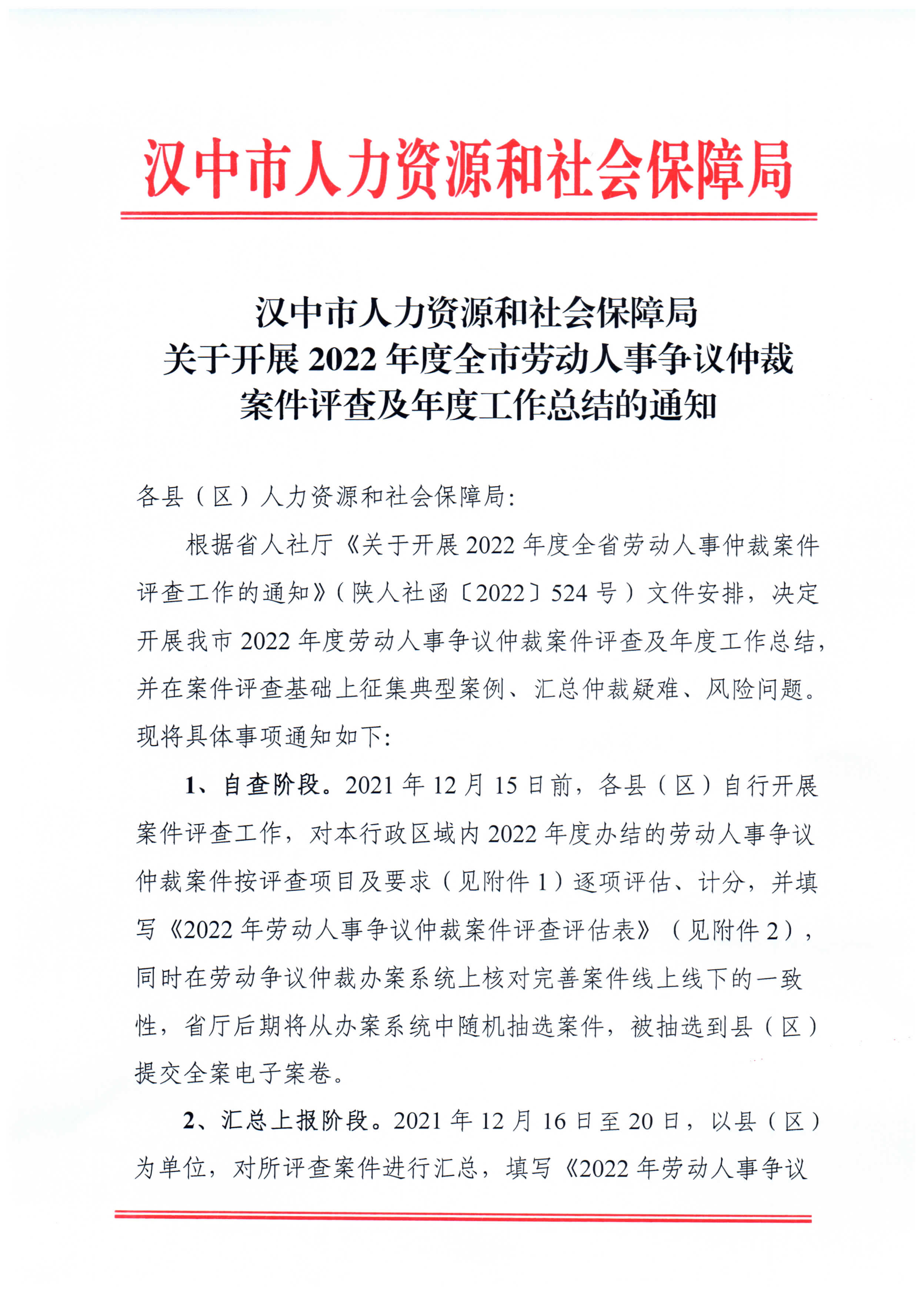 关于开展2022年度全市劳动人事争议仲裁案件评查及年度工作总结的通知