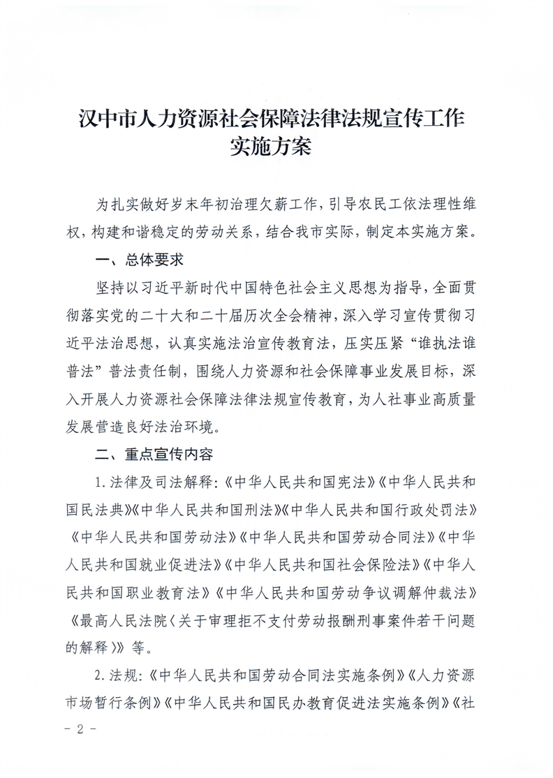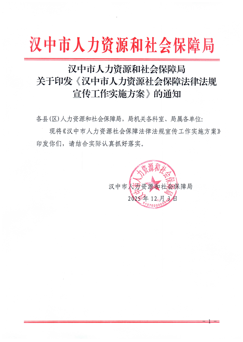 汉中市人力资源和社会保障局关于印发《汉中市人力资源社会保障法规宣传工作实施方案》的通知