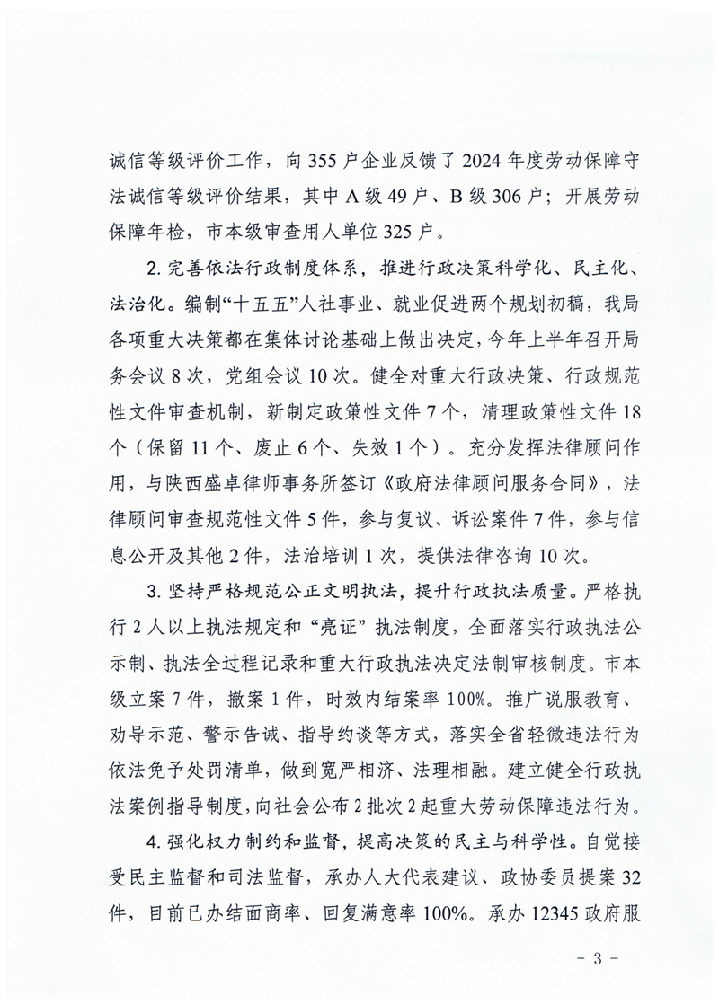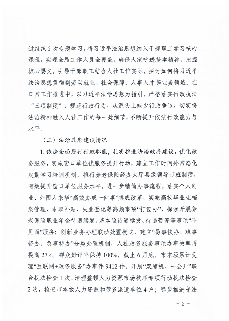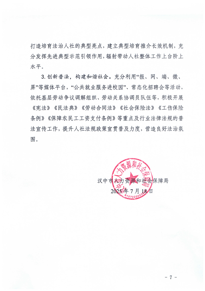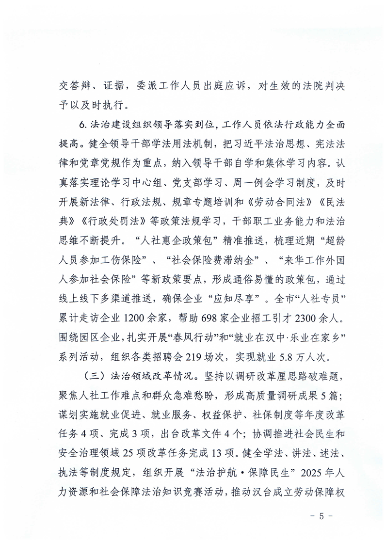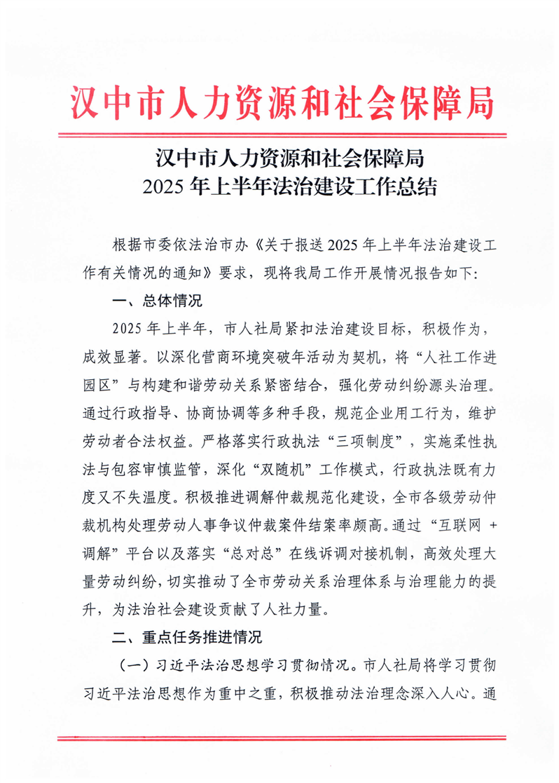 汉中市人力资源和社会保障局2025年上半年法治建设工作总结