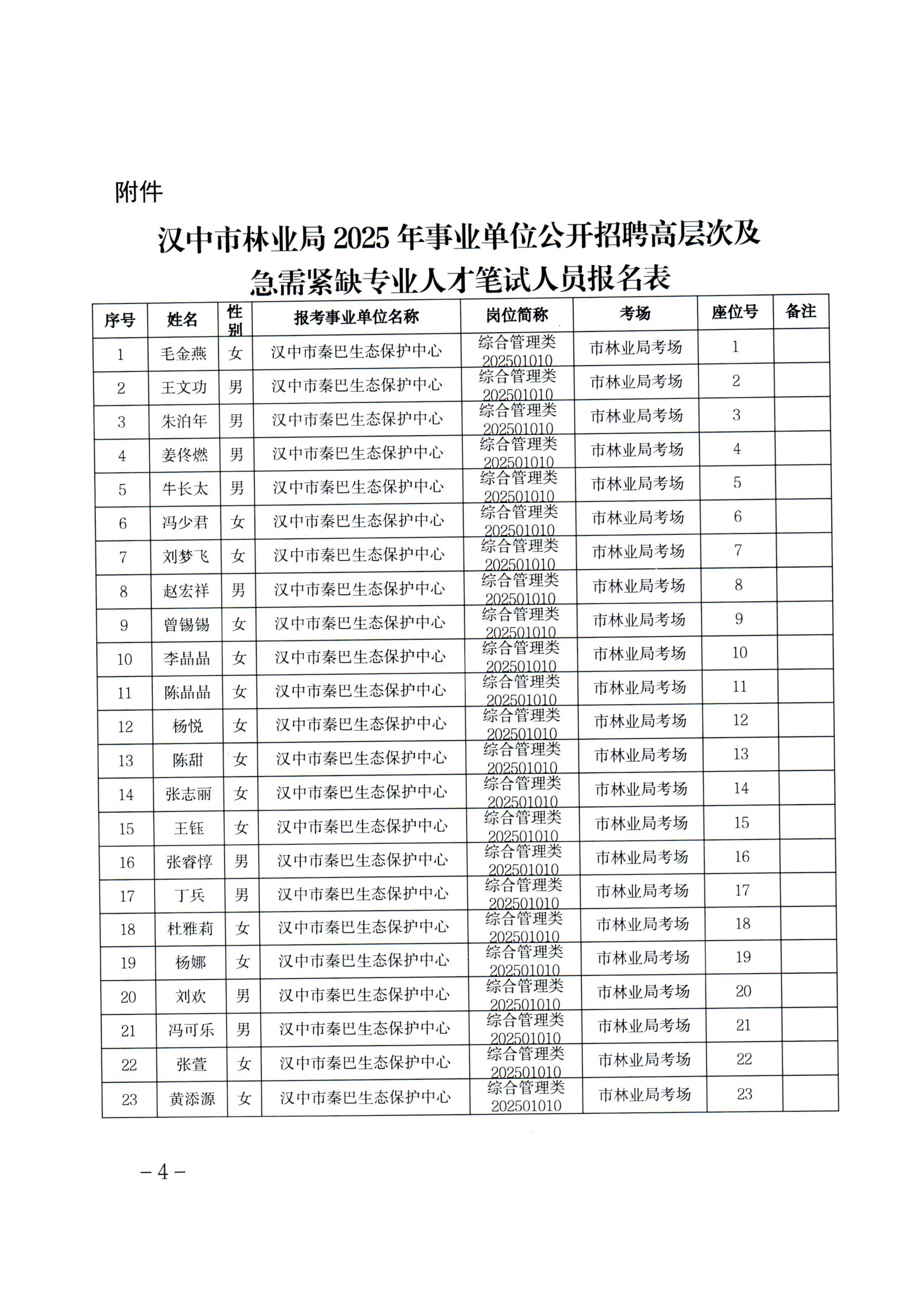 汉中市林业局2025年事业单位公开招聘高层次及急需紧缺专业人才笔试公告