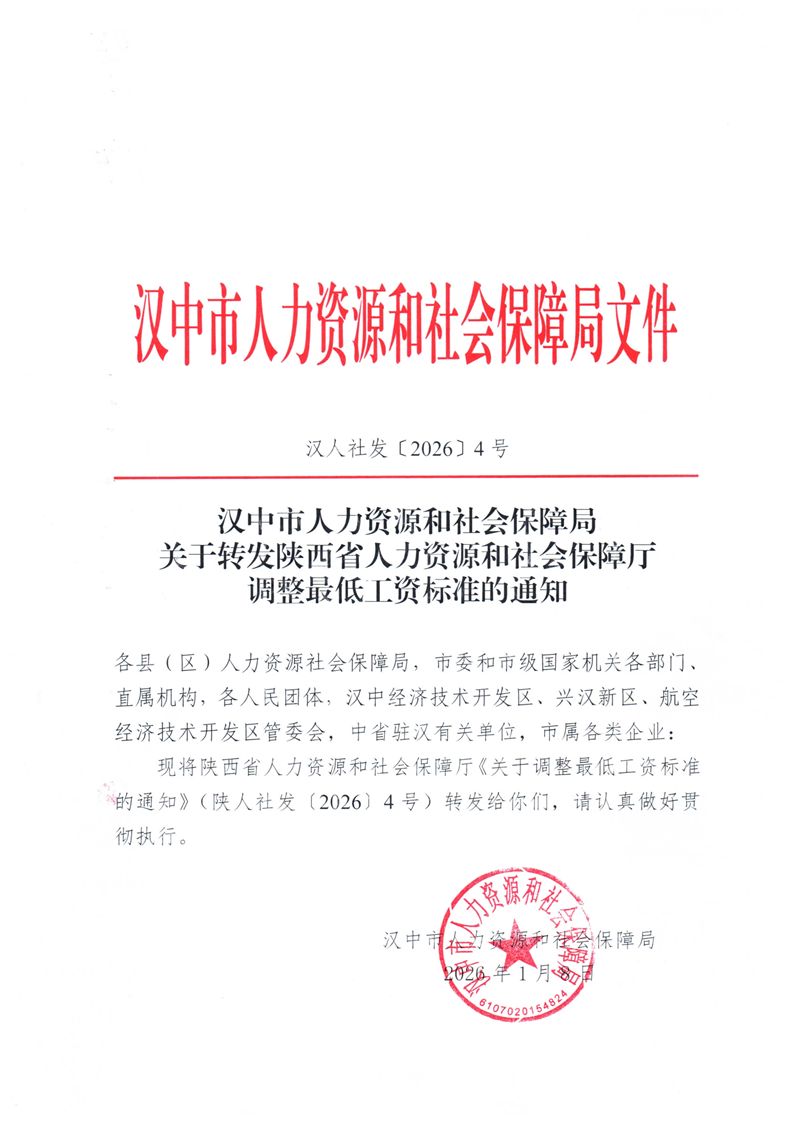 汉中市人力资源和社会保障局关于转发陕西省人力资源和社会保障厅调整最低工资标准的通知