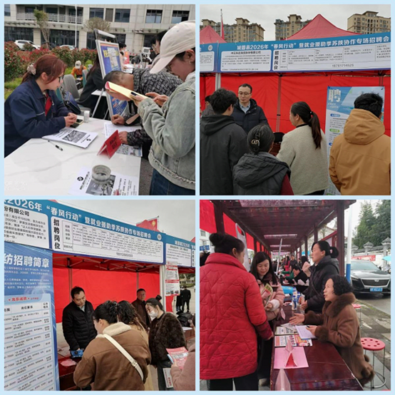 一是“现场招聘”搭建线下对接桥。以2026年“春风行动”为抓手,常态化举办线下专场招聘,深入推进“人社工作进园区”访企拓岗,精准摸排县内企业用工需求,分类梳理岗位信息现场集中发布。设置企业招聘专区,推动求职者与企业HR面对面洽谈,并为就业困难人员、残疾人等特殊群体提供岗位筛选、一对一求职对接等个性化服务。截止3月31日,“春风行动”33场招聘活动圆满收官,累计提供岗位1.6万个,达成就业意向3825人。